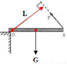 如圖所示,可繞O點轉動的質量均勻的金屬桿OA,在力F的作用下靜止水平位置,請畫出金屬桿重力G的示意圖和力F的力臂.