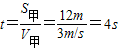 甲t=3m/s×3s=9m,乙的運(yùn)動(dòng)路程S