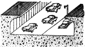 城市里部分道路設(shè)計成如圖,這種下凹道路在控制噪聲方面的作用是 ( )
