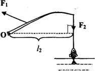 (1)在圖中畫出魚線對釣魚竿拉力F2的力臂l2;