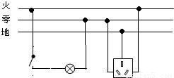 【答案】分析:把開關(guān)接在火線與電燈之間,三孔插座的接法是左零右火上接地.
