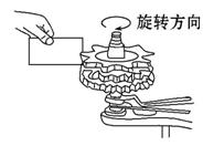 一個軸上固定著三個齒數(shù)不同的齒輪。當齒輪旋轉(zhuǎn)時,用紙片分別接觸齒輪,使紙片發(fā)出聲音的音調(diào)最高的是 (選填“上面”“中間”或“下面”)的齒輪。