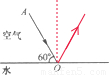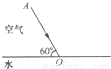 43、圖11中,AO是由空氣向水面斜射的一條光線。大致畫出折射光線,并用箭頭標明它的傳播方向。(1分)