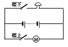 (3)小明想自己制作一個(gè)樓梯門鈴,準(zhǔn)備的器材有:電池組、一個(gè)電鈴、一個(gè)電動(dòng)機(jī)、開關(guān)導(dǎo)線若干. 要求:當(dāng)樓下有人按開關(guān)時(shí)時(shí),樓上的門鈴響,他可以通過室內(nèi)的開關(guān)來控制開門的電動(dòng)機(jī). 請你在圖丙方框內(nèi)畫出小明設(shè)計(jì)的電路圖。