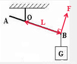 圖中用一根細(xì)繩將杠桿AOB在O點(diǎn)懸掛起來(lái),并在B處掛一重物G,欲在杠桿上施加一最小動(dòng)力F,使其在圖示位置平衡,作出該最小動(dòng)力的力臂和力的示意圖。![]()