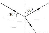 如圖所示,一束光線從空氣斜射到某液面上發(fā)生反射和折射,入射光線與液面成30°角,則反射光線與入射光線的大小為