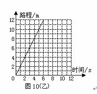 一輛電動玩具車作勻速直線運(yùn)動,它的速度―時間圖象如圖(甲)所示,請?jiān)趫D(乙)上畫出它的路程―時間圖象。