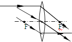 分析:在作凸透鏡的光路圖時,先確定所給的光線的特點再根據(jù)透鏡的光學特點來作圖:平行于主光軸的光線經(jīng)凸透鏡折射后將過焦點;過焦點的光線經(jīng)凸透鏡折射后,平行于主光軸;過光心的光線傳播方向不變.