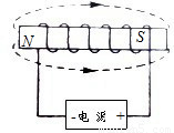 (1)標(biāo)出通電螺線管的N、S極和電流方向;