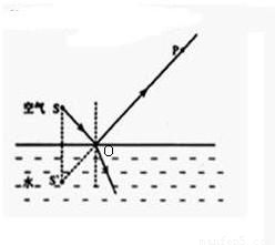 解答:解:先作出發(fā)光點S關于水面的對稱點S′,連接S′P,交平面鏡于點O,OP為反射光線,SO為入射光線;