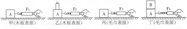 (3)大量實驗進一步證明:在接觸面粗糙程度相同時,滑動摩擦力大小與壓力大小成正比。在丙圖中物塊A上疊放一塊與A相同的物塊B,用彈簧測力計拉著物塊A,使物塊B隨A一起勻速前進(如圖丁所示)。此時彈簧測力計示數(shù)為F4,則F4=________N;此運動過程中,物塊B受到的摩擦力為_________N。