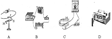 C.C圖:磁場(chǎng)對(duì)電流的作用 D.D圖:微波爐利用電流的磁效應(yīng)工作
