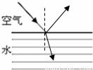 (2)光由空氣斜射進入液體中時,折射光線向靠近法線方向偏折,折射角小于入射角.如下圖所示: