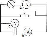 點(diǎn)評(píng):本題是一道閉合電路動(dòng)態(tài)分析題,根據(jù)電流表與電壓表在電路中的連接方法及電路現(xiàn)象判斷出a、b、c分別是什么表是本題的難點(diǎn),也是本題的解題關(guān)鍵.