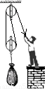 【答案】分析:圖中給出的滑輪組是“一定一動”,其繞線方法有兩種,但由于小明站在地上,即確定了繩子自由端的方向,所以先從小明的手中出發(fā),然后再依次繞過滑輪即可確定作圖方法.