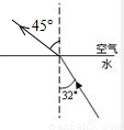 (4)根據(jù)已給出三個(gè)圖的信息,在圖2中畫出:光以32°的入射角從水斜射進(jìn)空氣時(shí),在空氣中的傳播徑跡(要求在圖上標(biāo)出折射角及其度數(shù))