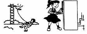 A.開關(guān)和燈泡的連接 B.絕緣片破損 C.在高壓線下放風箏 D.金屬外殼接地
