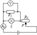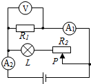 (2)開關(guān)S斷開,開關(guān)S1閉合,電流表A1被斷路,R1與L并聯(lián)后再與R2串聯(lián),電壓表測并聯(lián)部分的電壓,電流表A2測干路電流,根據(jù)滑片的移動可知接入電路中電阻的變化,根據(jù)歐姆定律可知電路中電流的變化和并聯(lián)部分兩端的電壓變化;
