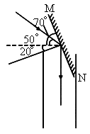 讓太陽光射到平面鏡上,適當調(diào)整平面鏡的角度,使反射光線恰好豎直入射到礦井中即可.如圖所示, MN為平面鏡,與水平成50°入射光線與要求豎直向下射出的反射光線的夾角為140°,作這個角的角平分線即為鏡面的法線.將鏡子垂直角平分線放置,就可以使光線直射入井底.法線與水平面的夾角為20°,法線與平面鏡垂直,所以平面鏡與水平面的適當夾角此題主要是利用平面鏡改變光路,此類問題首先要熟悉光的反射定律,理解入射光線和反射光線是關于法線對稱的.仔細分析題意,此題不過是已知了入射光線和反射光線來確定平面鏡的放置角度 (轉(zhuǎn)化為物理模型),解決這樣的問題時要從結果開始分析(逆向思維).先畫出入射光線和反射光線,延長這兩條光線交于一點就是光線的入射點,是不是就可以確定平面鏡的放置呢 ?還不行,再聯(lián)想到反射定律,法線應當是入射光線與反射光線的夾角的角平分線.確定了法線,就確定了平面鏡,通過簡單的角度計算就能確定平面鏡的確切放法. |