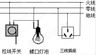 (2)三孔插座的接法:左孔接零線;右孔接火線;上孔接地線.