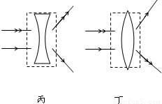 (3)凸透鏡對(duì)光線有會(huì)聚作用,故丁圖中為凸透鏡,凹透鏡對(duì)光線有發(fā)散作用,故丙圖中為凹透鏡.