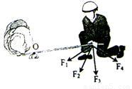 汶川地震中,滾滾的山石擋住了道路。增援人員要用撬棒撬開山石,分別沿如圖所示的四個方向用力,其中最省力的是()![]()