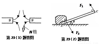 (1) 在圖甲中標出磁感線的方向和小磁針的N極.