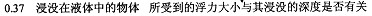 “在水中能下沉的物體是否受到浮力呢?”小明決定通過實(shí)驗(yàn)探究。他取了一個(gè)重為1N的鋁塊,掛在彈簧測(cè)力計(jì)上,當(dāng)鋁塊浸沒在水中時(shí),彈簧測(cè)力計(jì)的示數(shù)為0.63N。依據(jù)小明的實(shí)驗(yàn)可知鋁塊受到了水的浮力作用,且鋁塊所受的浮力大小為 N。接下來,小明又做了進(jìn)一步的探究,他讓浸沒在水中的鋁塊處在不同的深度,然后觀察彈簧測(cè)力計(jì)的示數(shù)是否變化,小明的設(shè)計(jì)是想探究 。