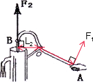 (2003?鎮(zhèn)江)如圖是活塞式抽水機的搖柄,AOB是一杠桿,在圖中作出阻力F2、動力臂 L1
