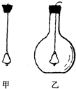 如圖所示那樣,把小鈴鐺栓在線上,線的上端穿出橡皮塞,如圖(甲)所示那樣,把橡皮塞塞到燒瓶上,然后搖動(dòng)燒瓶,記住小鈴鐺發(fā)出的鈴聲有多么響,取下橡皮塞,向燒瓶中倒少許水,給燒瓶加熱,待燒瓶中水沸騰一會(huì)兒,停止加熱,并迅速照如圖(乙)所示那樣塞緊橡皮塞,冷卻一會(huì)兒,再搖動(dòng)燒瓶,把這時(shí)聽到的鈴聲同前次鈴聲相比較.