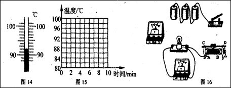 ○1某次數(shù)據(jù)沒有記錄,當時溫度計示數(shù)如圖14所示,請將漏填的數(shù)據(jù)填在表格內(nèi);