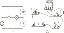 (1)請(qǐng)?jiān)趫D甲的兩個(gè)虛線框內(nèi),選填“電源”和“開關(guān)”的符號(hào),并滿足當(dāng)開關(guān)都閉合時(shí)兩燈組成并聯(lián)電路.