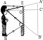 (3)如圖所示,A、C、B分別表示人的頭頂、眼睛和腳的位置.EF為平面鏡位置,由平面鏡成像特點可確定A′C′B′為ACB的像,因為OC=OC′,所以OC=$\frac{1}{2}$CC′,EO=$\frac{1}{2}$A′C′,FO=$\frac{1}{2}$B′C′,EF=$\frac{1}{2}$A′B′=$\frac{1}{2}$AB,