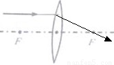 圖中的入射光線平行于凸透鏡主光軸,畫(huà)出經(jīng)凸透鏡后的折射光線;