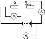 【答案】分析:由電路圖可知,兩電阻串聯(lián),電壓表測(cè)V1測(cè)R1兩端的電壓,V2測(cè)電源的電壓,電流表測(cè)電路中的電流;根據(jù)電源的電壓不變判斷電壓表V2示數(shù)的變化,根據(jù)滑片的移動(dòng)判斷接入電路電阻的變化,根據(jù)歐姆定律確定電路中電流的變化和電壓表V1示數(shù)的變化.