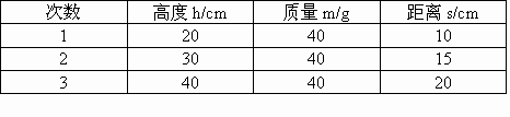 下表給出了用同一個小鋼球從三個不同高度滾下時對木塊撞擊距離的數(shù)據(jù),根據(jù)數(shù)據(jù)分析論證并得出結論.數(shù)據(jù)如下表: