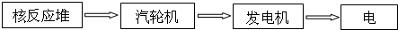 為緩解電力緊張的狀況,我國多措并舉:合理調(diào)煤保電、優(yōu)化利用水能資源、開發(fā)利用新能源,近年來陸續(xù)建成了一些核電站.如圖為核電站發(fā)電流程圖,在核電站發(fā)電過程中,關(guān)于核能的獲取途徑與能量轉(zhuǎn)化順序,下列說法中正確的是( )