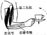 解答:解:人在端茶杯時,若把前臂看成杠桿,支點在肘關(guān)節(jié)的位置,肱二頭肌收縮抬起前臂是動力,茶杯作用在手上產(chǎn)生的力是阻力;
