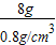 將鐵塊放入盛滿酒精的杯中時,有8g的酒精溢出,則鐵塊的體積是 cm3,鐵塊的質(zhì)量是 g.(ρ酒精=0.8g/cm3 , ρ鐵=7.9g/cm3)