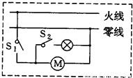 投影儀的燈泡功率很大,配有風扇進行散熱.使用投影儀時,先閉合開關(guān)S1,風扇轉(zhuǎn)動,再閉合開關(guān)S2,燈泡發(fā)光;若只閉合開關(guān)S2,燈泡不發(fā)光.請在虛線框中畫出電路圖. (風扇用電動機的符號表示,在圖中標明開關(guān)Sl和S2