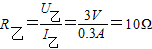 Ω;將甲和乙串聯(lián)后接在電壓為3V的電源兩端,乙電阻的功率為