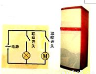 【答案】分析:當(dāng)打開(kāi)冰箱門(mén),電燈亮,冰箱門(mén)關(guān)閉后,燈滅;當(dāng)冰箱里的溫度降低到一定程度后,壓縮機(jī)停止工作,直到溫度高到一定的值才再次啟動(dòng).