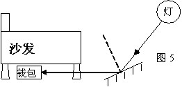 錢包掉到沙發(fā)下.沒有手電筒,小明借助平面鏡反射燈光找到了錢包.圖5中已標示了反射與入射光線,請在圖中標出平面鏡,并畫出法線.