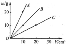如圖,是A、B、C 三種物質(zhì)的質(zhì)量m與體積V的關(guān)系圖線,由圖可知,A、B、C三種物質(zhì)的密度