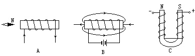 繞制下列螺線管,使它通電后能產(chǎn)生如圖所示的磁場(chǎng).