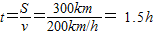 解答:解:(1)列車通過300km需要的時(shí)間為: