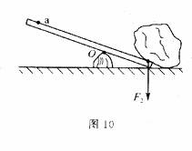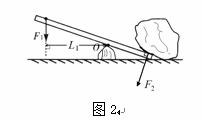 圖9是工人用撬棍撬石頭的示意圖。請(qǐng)畫出動(dòng)力F1 的力臂;并畫出石頭對(duì)撬棍壓力的示意圖。![]()