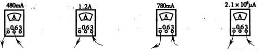 根據(jù)圖各圖下面電流值的大小,在電流表上畫出接線柱并標(biāo)明電流的方向.