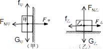 如圖(甲)所示,物體甲重30N,被50N的水平壓力F甲壓在豎直墻壁上保持靜止.如圖(乙)所示,物體乙重60N,在40N 的水平拉力F乙作用下,沿水平桌面勻速向右運(yùn)動.則物體甲受到的摩擦力f甲=_______;物體乙受到的摩擦力f乙=________.![]()