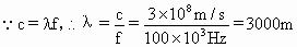 一個(gè)電臺(tái)發(fā)射的電磁波的頻率為100kHz,那么此波的波長(zhǎng)為